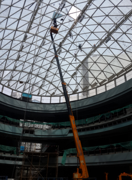 为确保武进万达广场大型LED悬挂屏的使用清静,,,,,,克日,,,,,,我公司检测中心受委托对该广场中庭椭圆采光顶钢龙骨举行了静载试验。 。。。。。。 。该椭圆采光顶长33.6m,,,,,,宽25.2m,,,,,,离地25m,,,,,,属于大型网架结构,,,,,,这是我公司检测中心首次单独对此类大型钢龙骨网架举行现场...